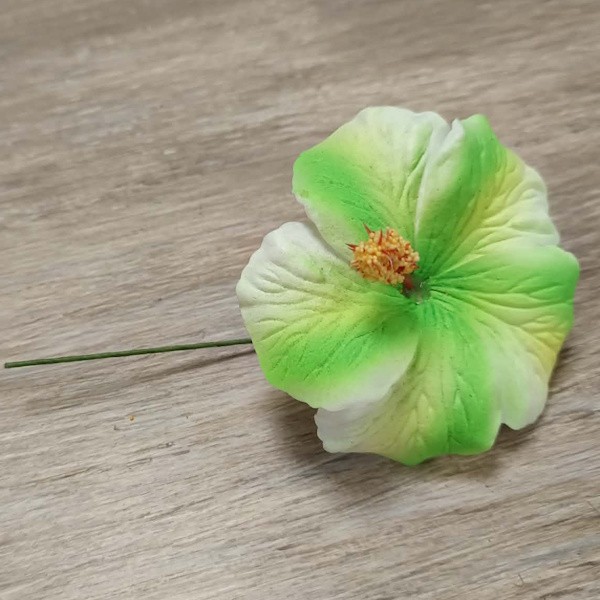 Hibiscus marbré vert sur tige métale