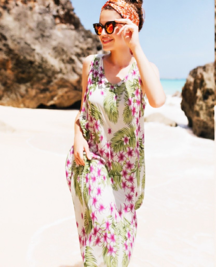 Tunique ample et colorée, motifs estivals. Taille unique pour un look parfait, même après une sieste sous le parasol !