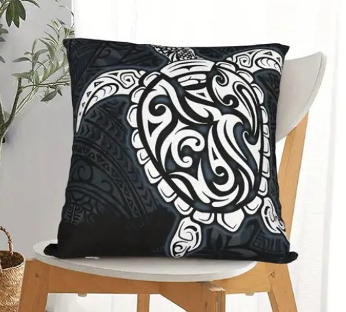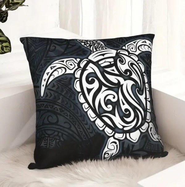 Housse de Coussin 45X45 tortue tatouée blanc et noir de belle qualité illuminant votre canapé, fauteuille ou lit