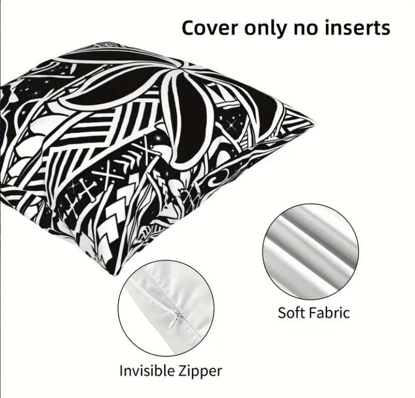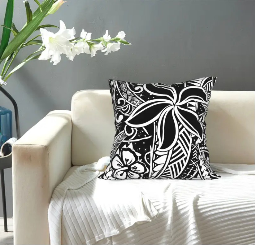Housse de Coussin 45X45 tiaré tatouage blanc et noir de belle qualité illuminant votre canapé, fauteuille ou lit