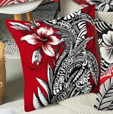 Housse de Coussin 45X45 hibiscus et tatouage noir et rouge de belle qualité illuminant votre canapé, fauteuille ou lit
