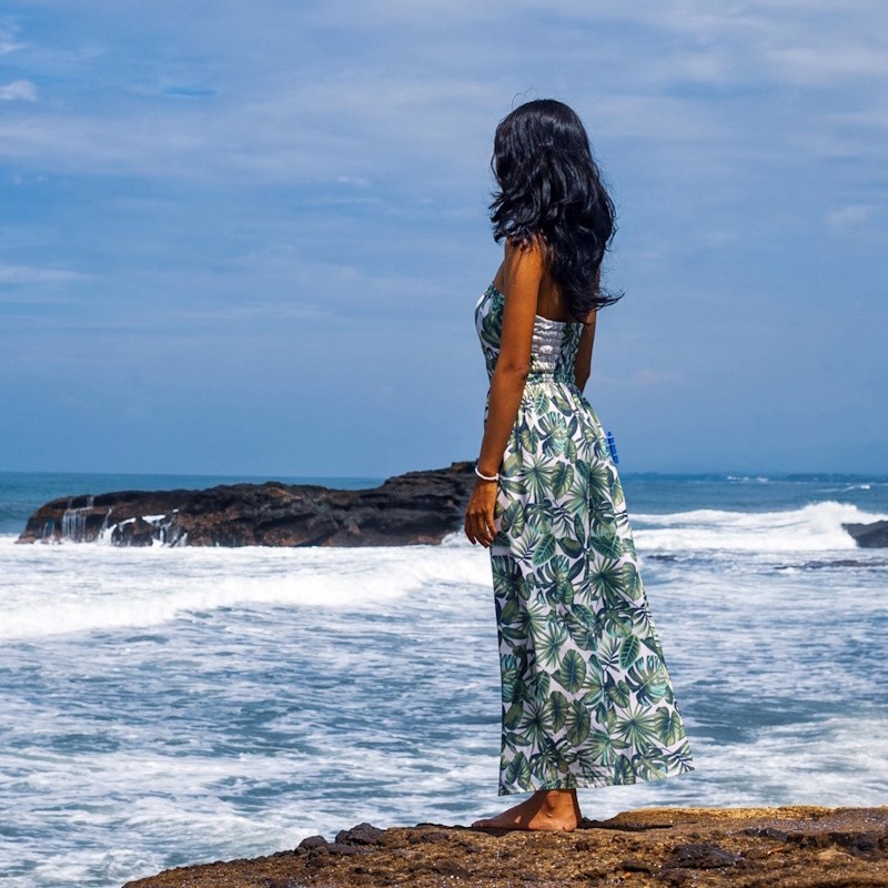 Robe d’été, robe de plage, robe de soirée, robe de tous les jours, elle est très légère et confortable. Avec sa structure élastique sous le volant elle s’adapte à toutes les morphologies.