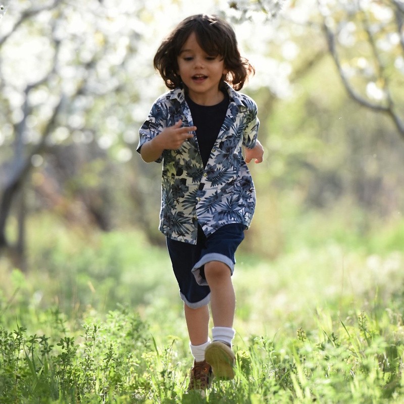 Claire et intemporelle, la chemise hawaïenne enfants Moho Tani blanche apporte une touche estivale élégante, facile à associer en toute circonstance.