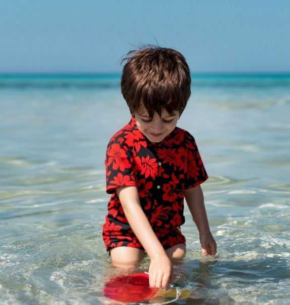 Classe et fun à la fois ! Cette chemise hawaïenne noire aux hibiscus rouges transforme votre enfant en mini-star des vacances. Confort, style et bonne humeur garantis !