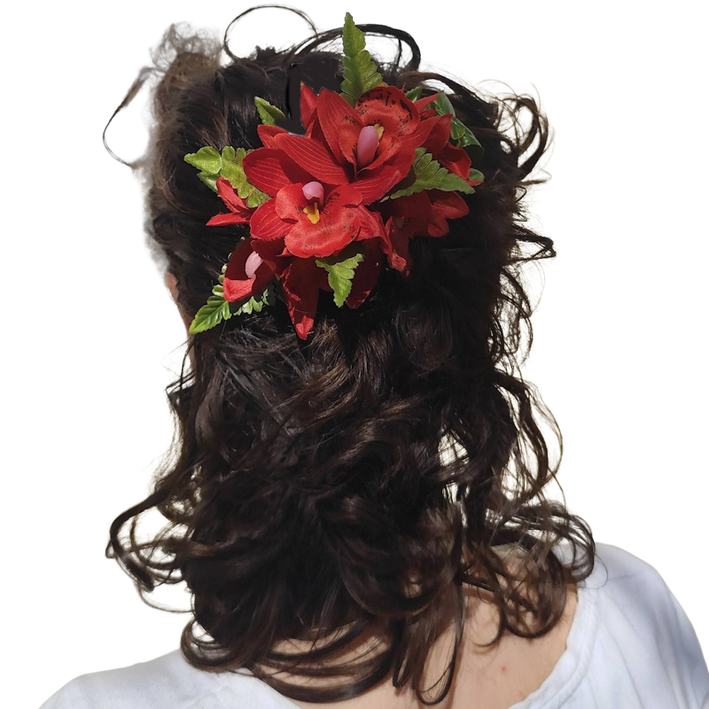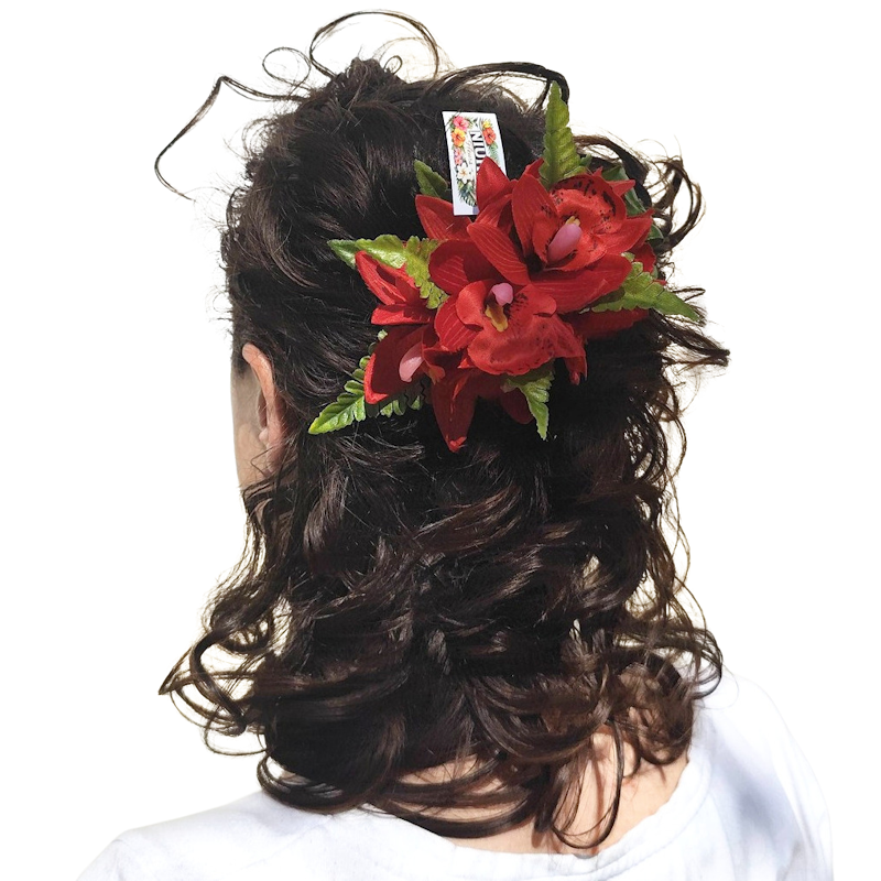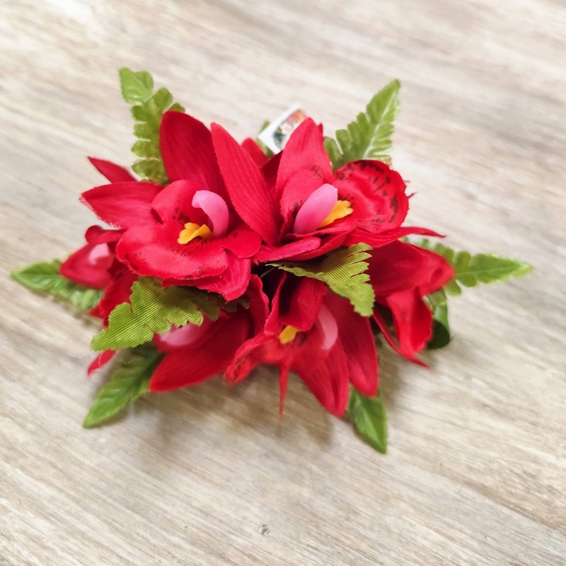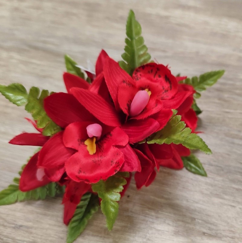 Pince à cheveux composition orchidées rouge