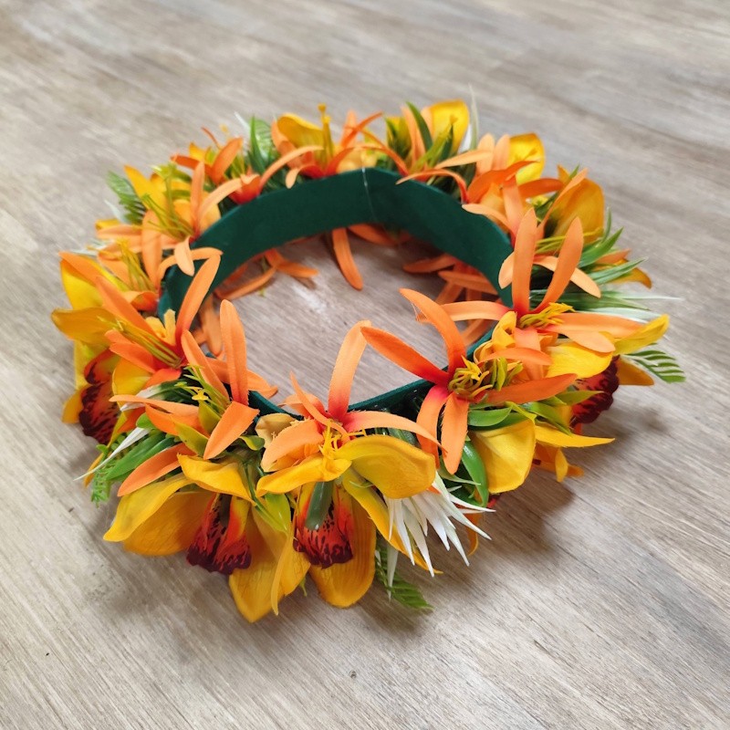 Apportez une touche d’exotisme et de soleil à votre tenue avec nos couronnes de tête fleuries d’inspiration tahitienne. Composées de multiples fleurs délicates aux nuances lumineuses, elles se distinguent par leur couleur dominante jaune, symbole de joie et de vitalité.Fabrication artisanale, fait main de la marque "NIUHI fleurs"