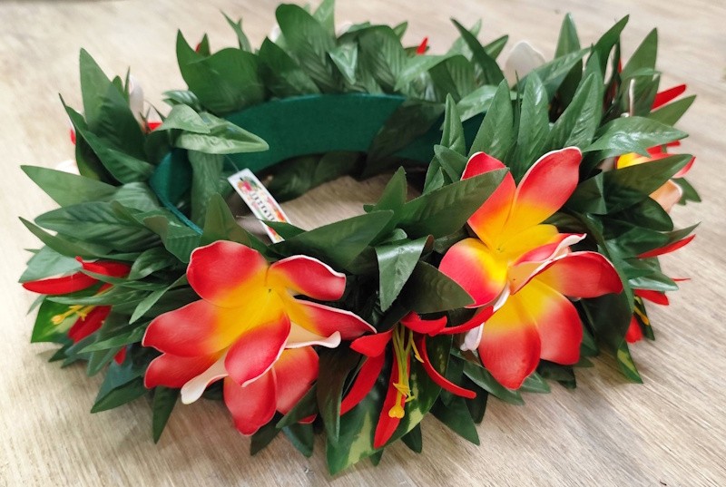 Apportez une touche d’exotisme à votre tenue avec cette couronne de tête très feuillue, inspirée des îles. Composée de belles feuilles vertes et de fleurs de frangipanier rouge, elle offre un rendu naturel, frais et plein de caractère.