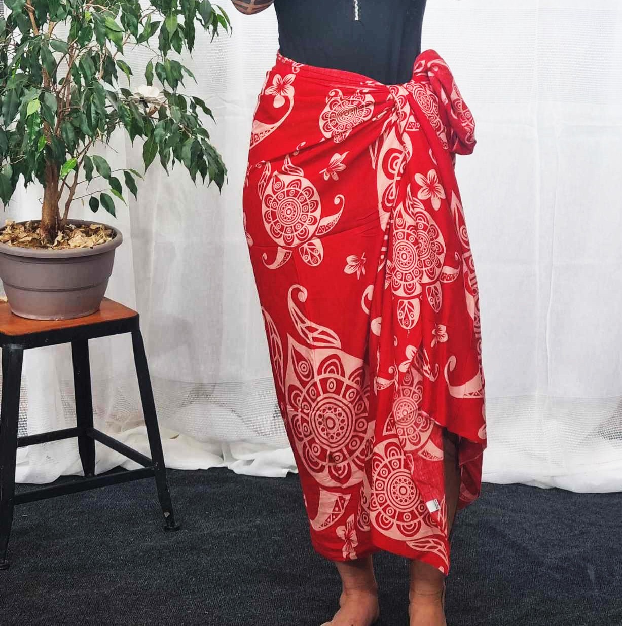 Paréo rouge à tortue blanche. Léger, stylé et inspiré des îles pour un look estival vibrant et original.