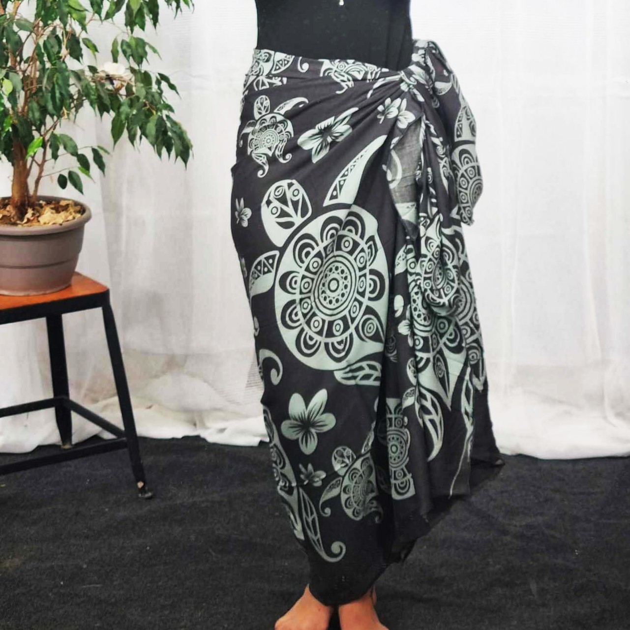 Paréo Gris tatouage tortue mandala