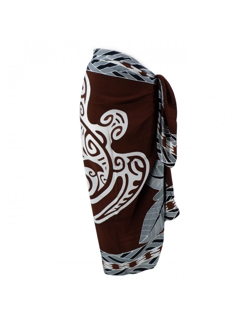 Paréo Marron Tatouage Tortue