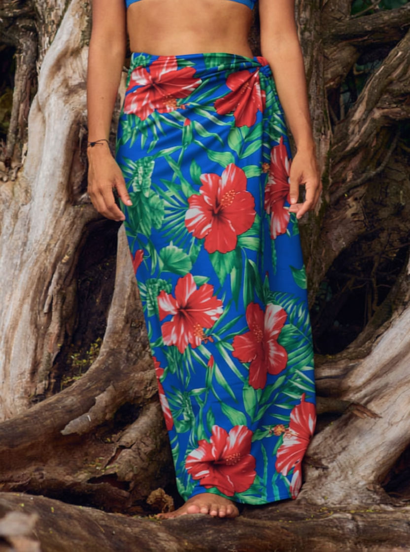 Paréo Bleu gros hibiscus flamboyant