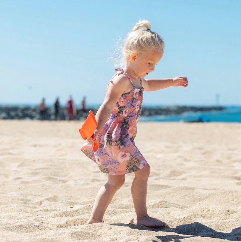 Un tissu tout léger, des fleurs plein les yeux, et une coupe prête à suivre chaque course dans le jardin.  Son maintient élastique au niveau du buste (dit "smoke froncée") s’adaptera à la morphologie de votre enfant. C’est la robe parfaite des petites vahinés pour l’été, la plage, le carnaval ou les soirées déguisées.